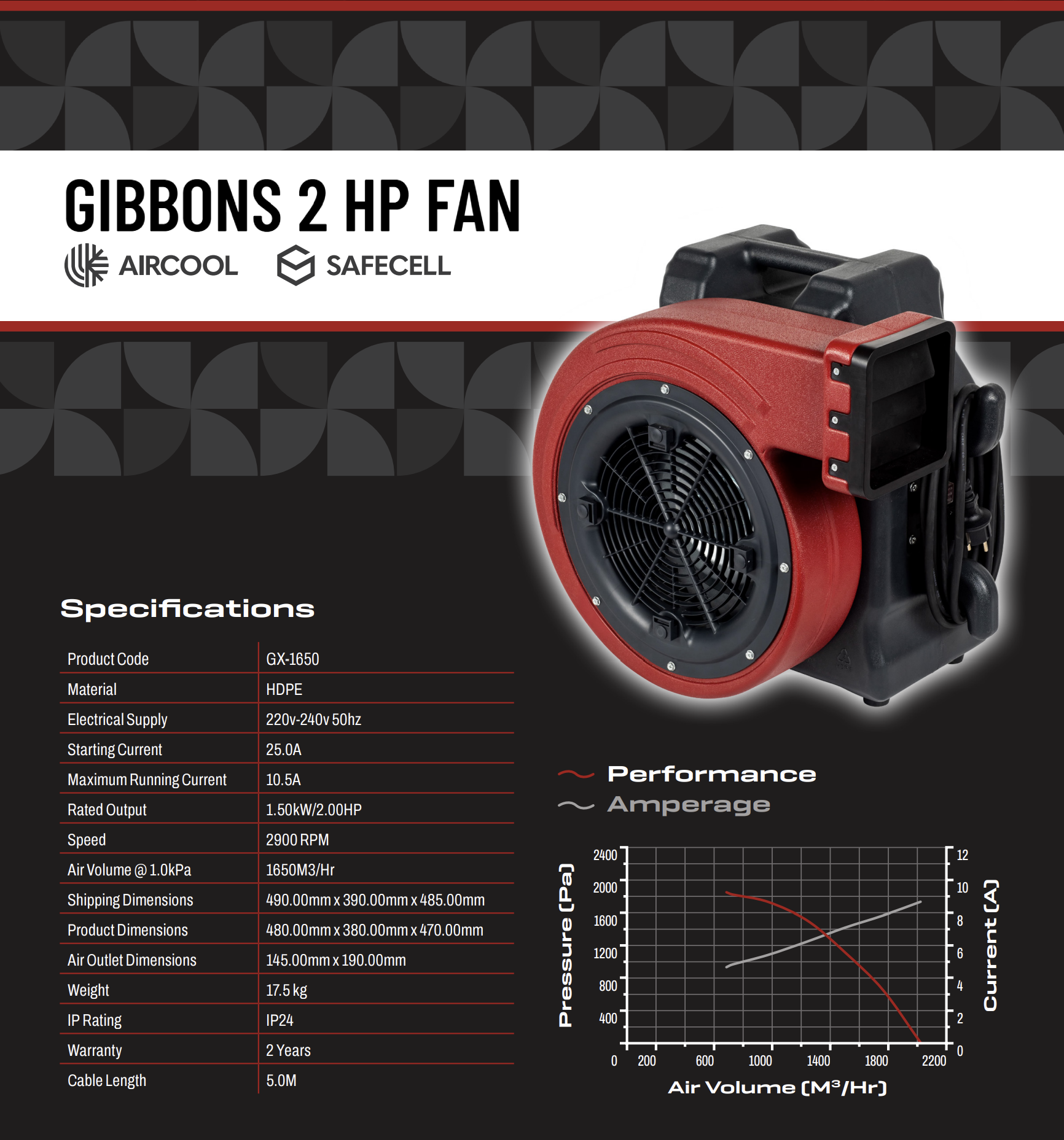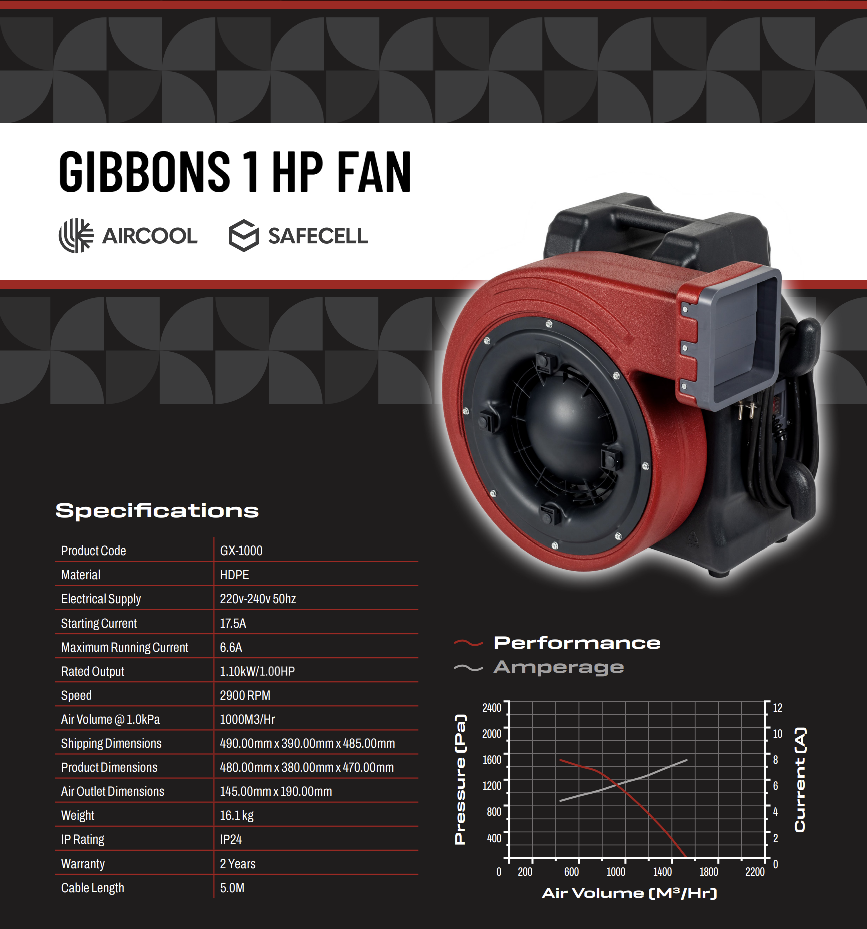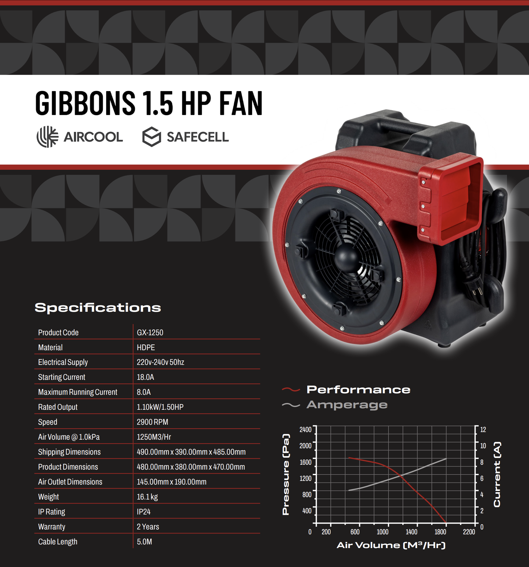 Gibbons’ SafeCell protects the electrical connections in the blower from dust, moisture and damage. The Safecell also acts as a firewall further enhancing the X-Series’ ability to withstand fire.
